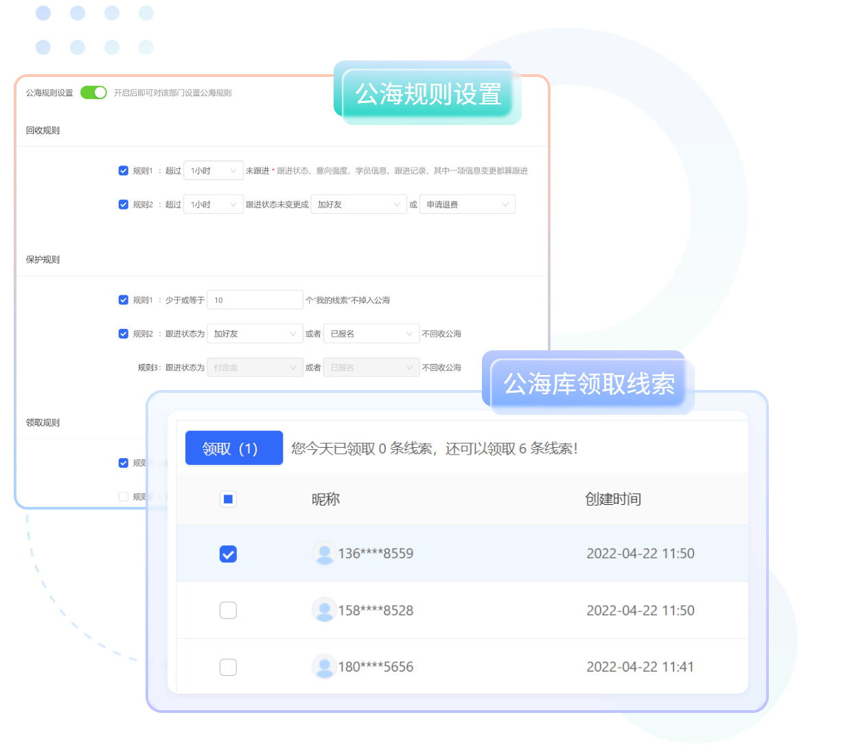 可根据部门需求不同,部门自定义公海回收及领取规则